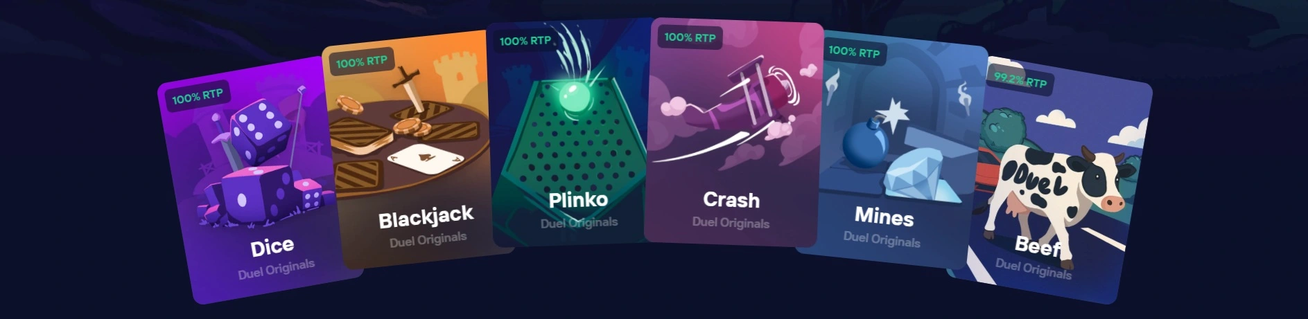 Duel is created for gamblers who are looking to play various casino games at fair odds and transparent rules. We keep our design slick and clean, without unnecessary pop ups and banners.